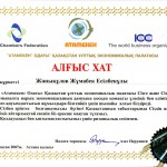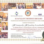 Благодарственное письмо от Национальной экономической палаты Казахстана “Союз”Атамекен” |