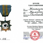 Удостоверение о награждении Жаныкулова Жумабека Есилбековича медалью “Атамекен” 2 степени |