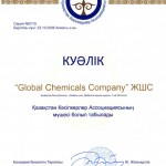 Сертификат соответствия о регистрации в Государственном реестре Государственной системы классификации Республики Казахстан. |